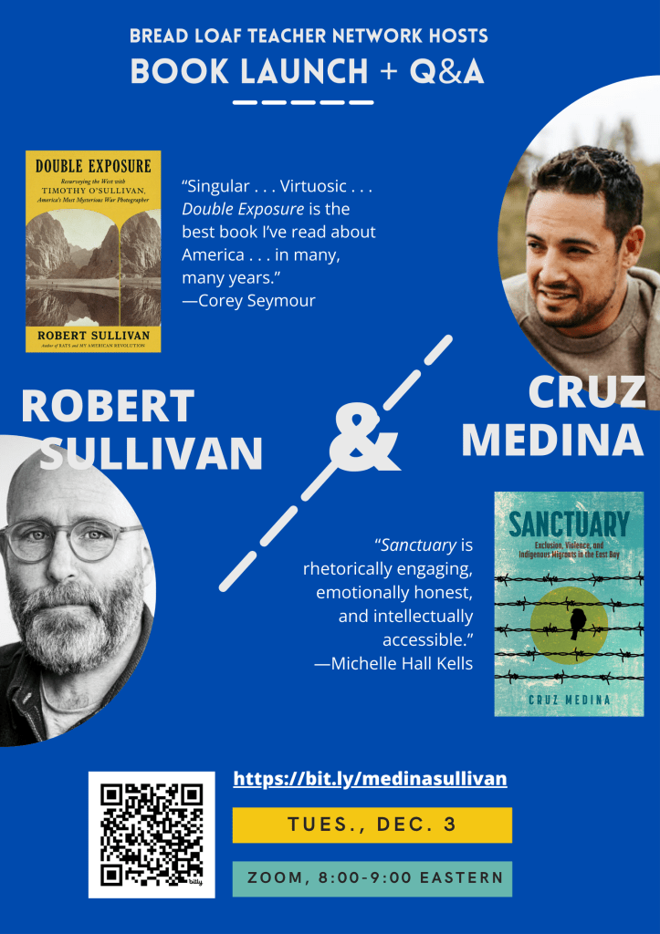 The Bread Loaf Teacher Network and BLTN Journal host a virtual book launch talk with Cruz Medina, hosted by author Robert Sullivan.